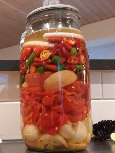 500 g friske chilier (bland gerne stærke og milde – fx habanero, jalapeño, cayenne, snackchili)